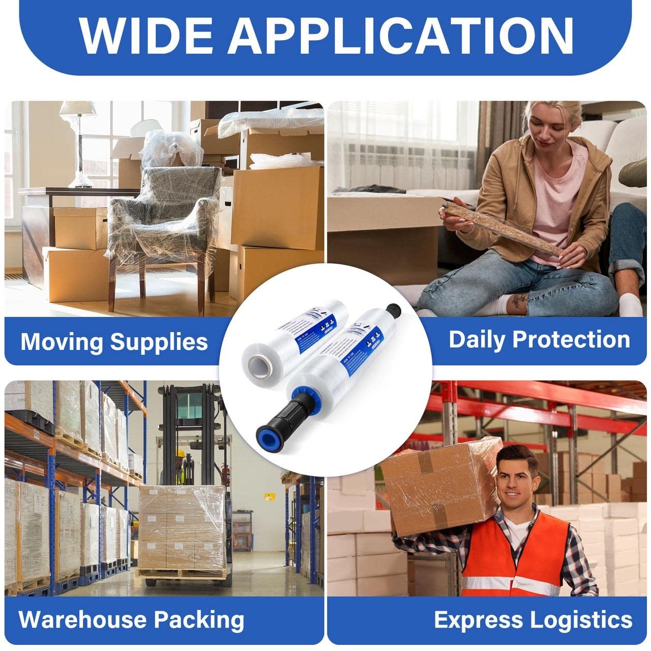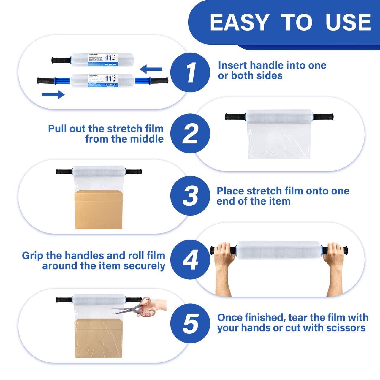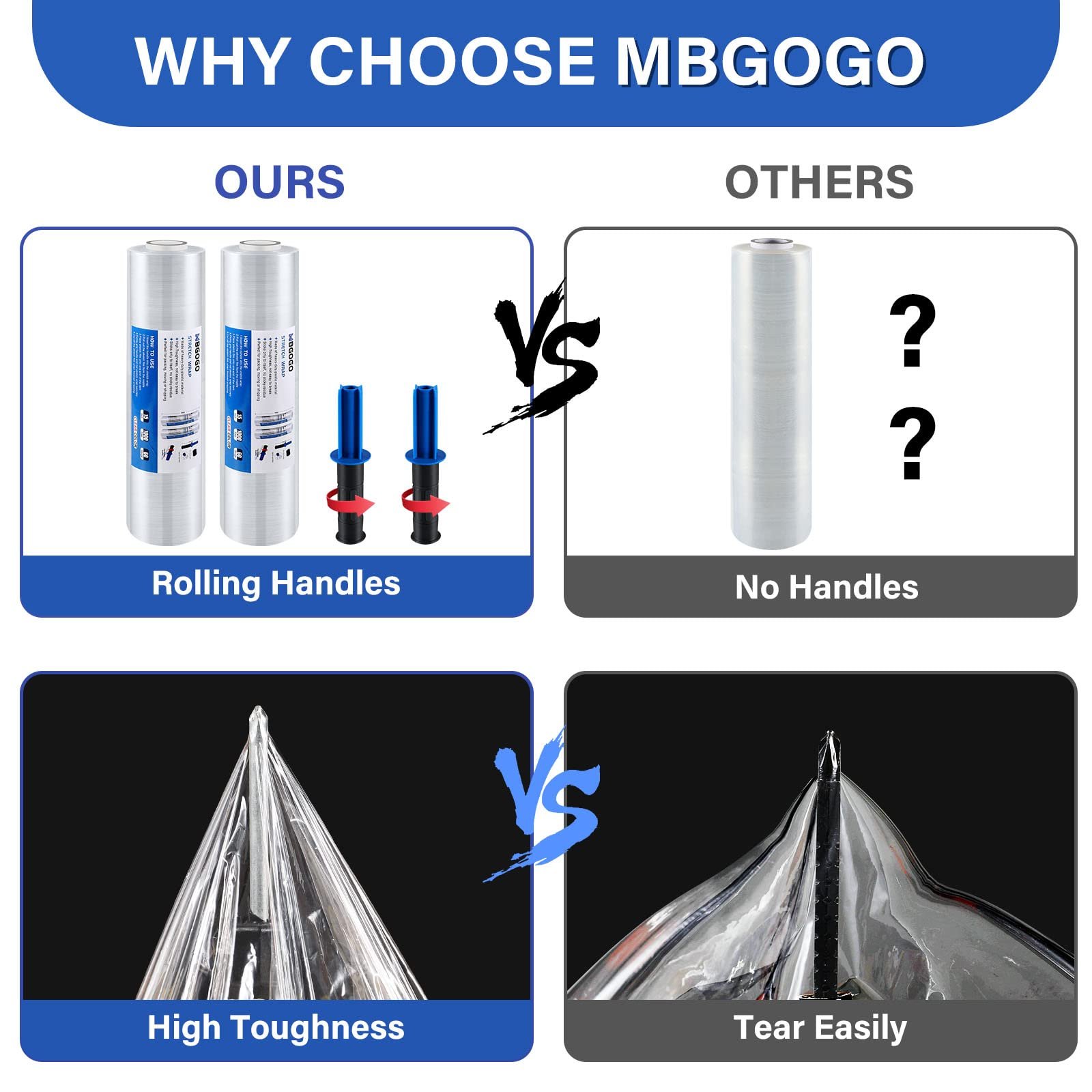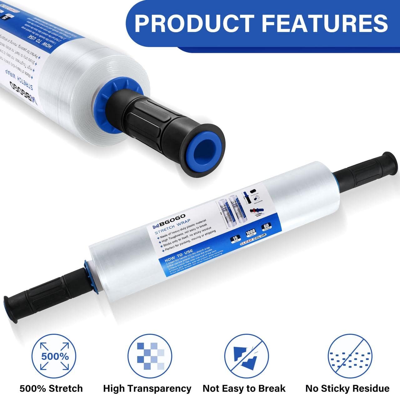 MBGOGO Stretch Wrap Film with Handles, 15 Inch x 1000 Feet Plastic