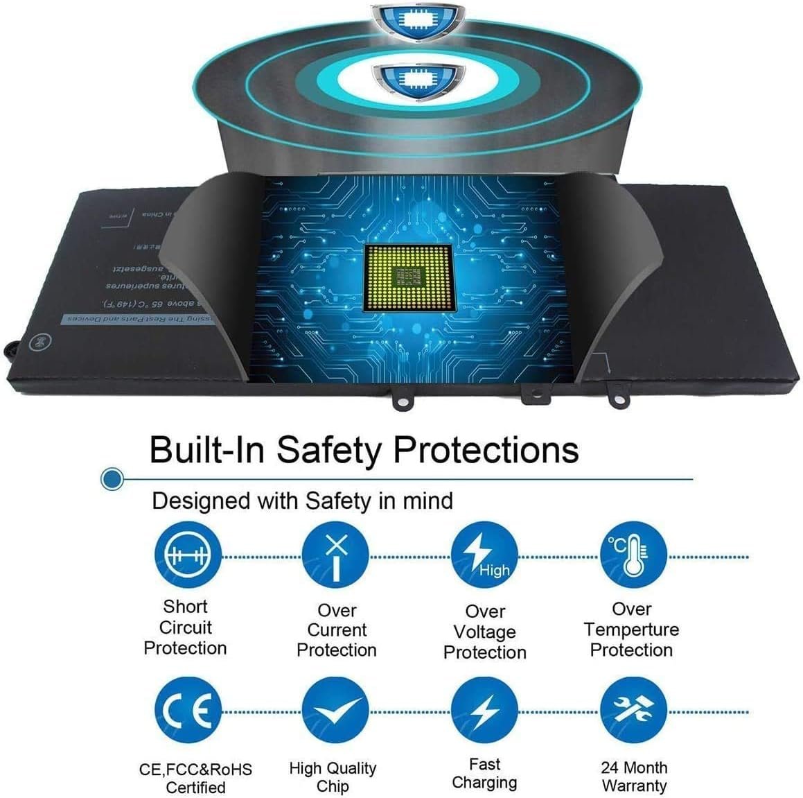 - TOP QUALITY AND EASY TO INSTALL: Our 68Wh 451-BBZG GJKNX Laptop Battery for Dell Latitude 5590 5480 5580 is an upgraded version. Assembled from top quality material and circuit boards to ensure fast charges and low power consumption, 100% New from Manufacturer, Overcharge and Overdischarge Circuit Protection, Over-temperature and Short-circuit Protection. Two free screwdrivers included, help you open and install the battery more easily. Each of our laptop batteries is CE-/FCC-/RoHS-Certified.
