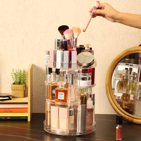 - 360 degree rotating cosmetic storage: Perfectly organizes and stores your cosmetics and accessories. Easy access to all of your makeup products.It’s a Perfect Christmas Gift for your friends, family members and any makeup lovers.