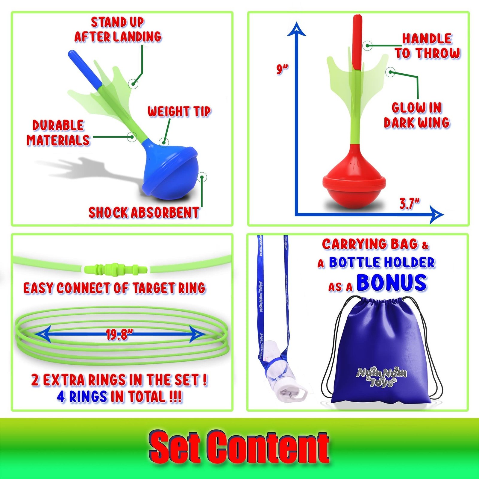 - MAKE YOUR OWN RULES: Follow the game instructions or make up your own to keep things interesting. With the glow-in-the-dark rings and darts, it’s even more fun and challenging to play it at night!