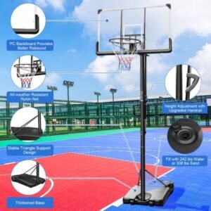 - 【UPGRADED DURABLE MATERIAL】KL KLB Sport basketball system is designed with a sturdy steel pole for superior strength and a high-strength & wind-protected PVC transparent backboard, this basketball goal is impact-resistant and shatterproof enough for the most competitive games. Using high strength HDPE blow molding base and durable all-weather nylon net, this hoop will definitely last many basketball seasons.