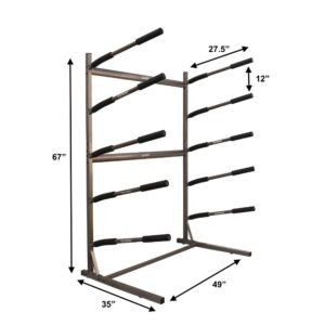 - SPACE SAVER: This premium surfboard display rack is perfect to quickly organize and protect your gear such as regular surfboards, fish surfboards, and boogie surf boards. Dimensions are 19.25″ deep X 45.5″ wide and 28.5″ tall.