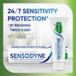 Sensodyne Fresh Mint Sensitive Toothpaste is a cavity prevention and sensitive teeth treatment that provides relief and lasting sensitivity protection, with a mint flavor that keeps your mouth feeling fresh and clean. This potassium nitrate and sodium fluoride toothpaste builds 24/7 protection against sensitivity by protecting exposed areas of dentin and working deep inside the tooth to calm the nerves. With twice daily brushing, this SLS free toothpaste delivers the same cavity protection benefits of regular anticavity toothpaste, for healthy teeth and fresh breath. Available in a convenient 2 pack, this ADA accepted toothpaste for sensitive teeth keeps you stocked for longer. For best results, brush for two minutes, twice daily. Get lasting protection from tooth sensitivity with Sensodyne.