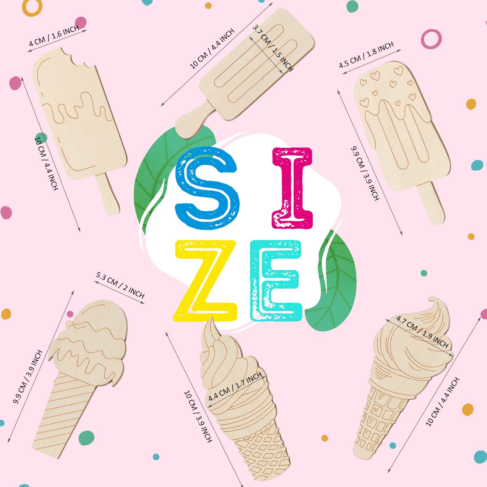 Unfinished Ice Cream Wood Cutouts Summer